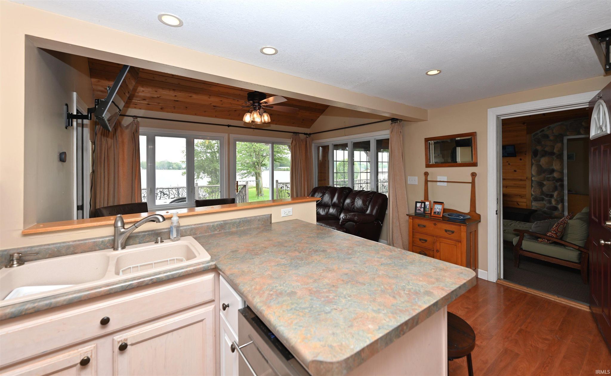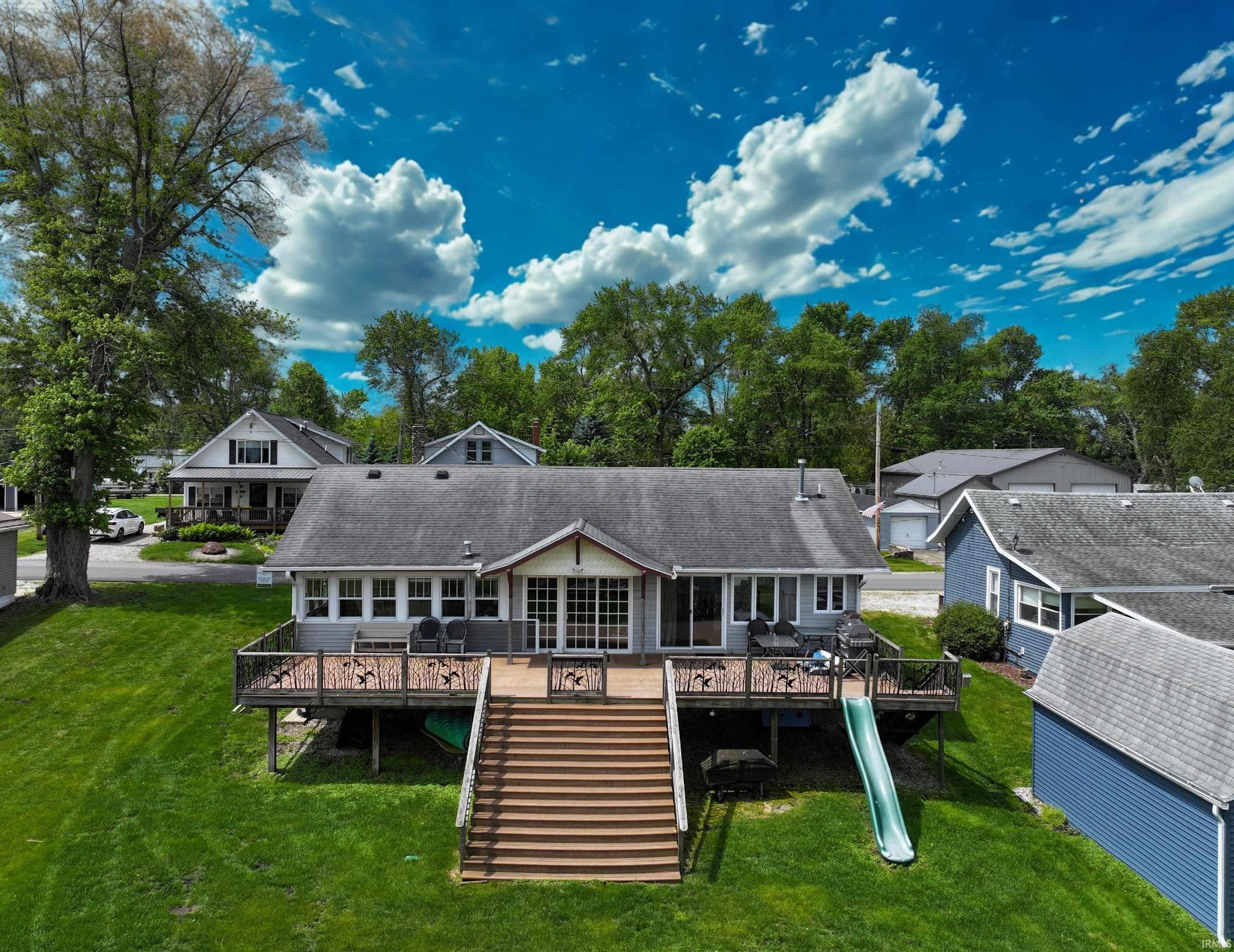 Lake Life Awaits! Savor the stunning views of Bruce Lake from your spacious deck. Countless memories waiting to be created with BBQs, bonfires, yard games, boat rides, fishing and more! This charming 3-5 bedroom home is filled with character. The living room exudes a cozy cabin ambiance, featuring a cathedral ceiling and a breathtaking view of the lake. On one side of the home, you will find a primary suite that includes a bedroom, a bathroom, and your very own living room/sunroom. The opposite side of the home boasts a kitchen, dining room or sitting area, bathroom, two bedrooms, and a spiral staircase leading to a loft where you will find three twin beds, Additionally, there are two walk-out basements equipped with sleeping arrangements, laundry facilities, and bathrooms. Experience the perfect blend of comfort and nature!