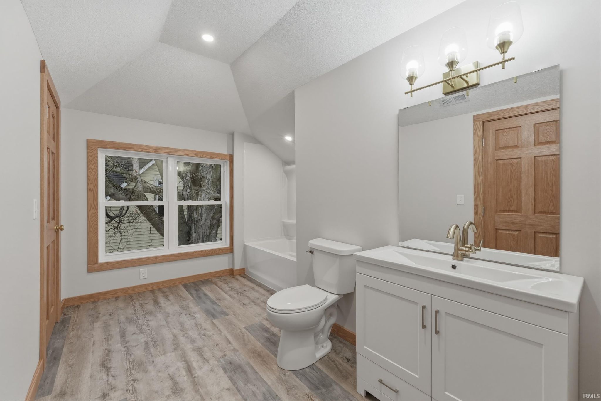 This home has had a complete remodel from the ground up. New roof, siding gutters, windows, plumbing, electrical, doors, drywall, bathrooms, furnace, AC and water heater. New flooring in kitchen, bathrooms living room and upper level. Eat in kitchen has new cabinets with self closing doors, new counter tops, new back splash and all new appliances. One car attached garage with outside entrance only it has new windows, siding and new roof. Spacious back yard for all your outdoor activities with plenty of space for parking.