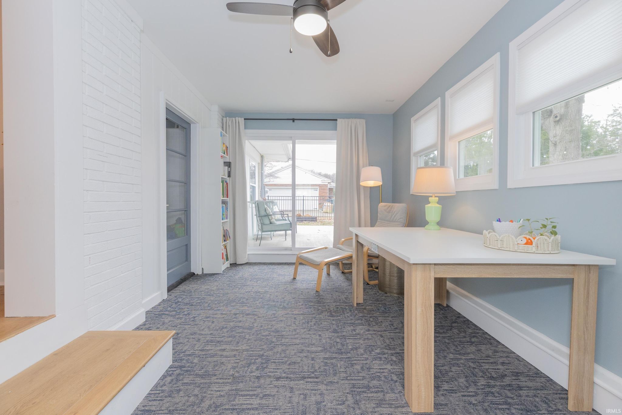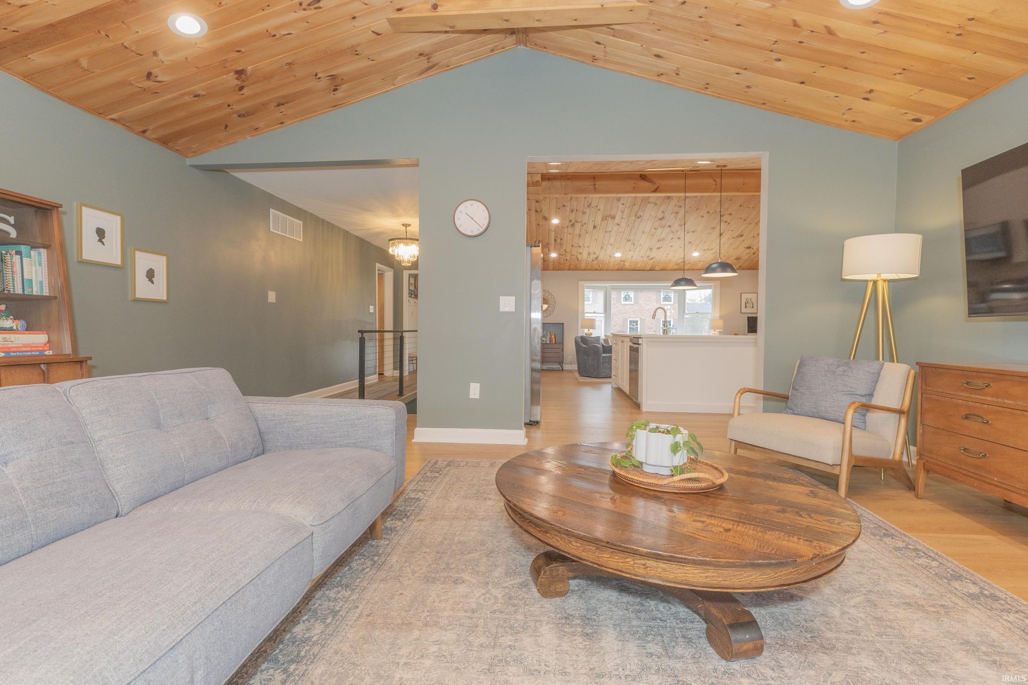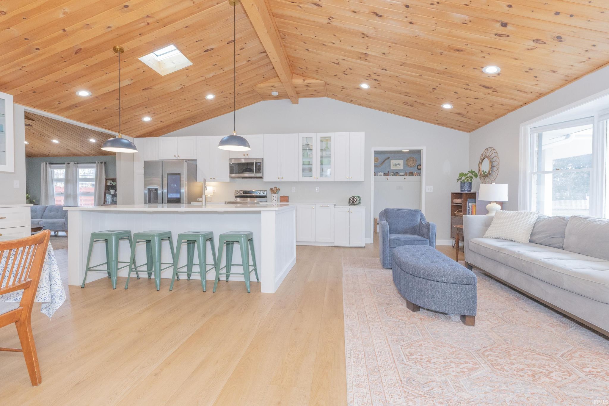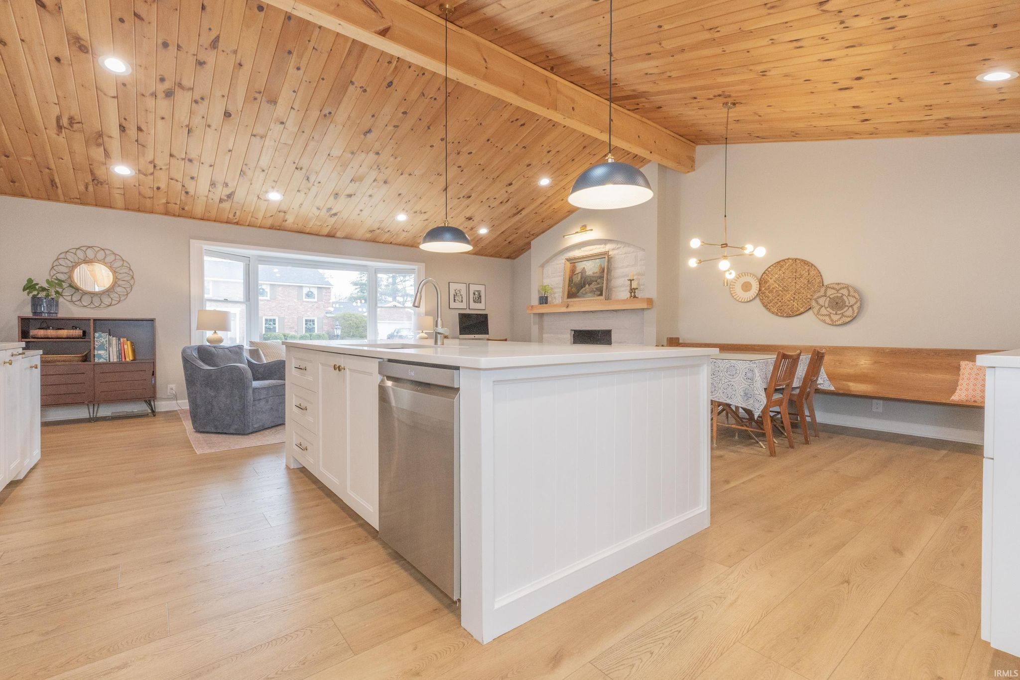 Mid-Century Modern Ranch Stunner! Welcome to this extensively updated 4 bedroom, 2 bath home located in the highly desirable Arcadian Acres neighborhood. This property offers a unique blend of stunning architectural features, modern comfort and spacious outdoor living. Every detail has been thoughtfully curated, starting with the exterior. The brick was updated with a specialty masonry paint, giving it a fresh look that will last for years to come. The curb appeal continues with new soffits, gutters, shutters, and a concrete drive and walkway. The solid wood entry door was carefully selected and stained to pair seamlessly with the mid-century feel. Inside the amazing details continue - vaulted ceilings in both the kitchen, living room and family room are stunning. The soaring ceilings add so much character, making these rooms bright and inviting! The spacious kitchen features quartz countertops, white cabinetry, a large island with a stainless steel sink, pendant lights, and a skylight. A gorgeous woodburning fireplace with Bedford stone and arch detail add to the one-of-a-kind features of this home. A sunroom was added nearby that could be used as on office/playroom. This room is connected to the garage, the main floor laundry area and has access to the patio. The adjoining family room with original windows provides a cozy space, perfect for family movie night. Attractive and durable Hewn flooring (wood-look with limestone core) is throughout the house giving a seamless finish. Down the hall are four nice sized bedrooms with charming original doors, new lighting and large closets. The owner’s suite offers double closets and an attached full bathroom. The guest bathroom has been fully updated with a double vanity, hex tile, wainscotting, and stylish fixtures. The unfinished basement is a blank canvas, that could be used for extra living space, workout or storage. It offers a woodburning fireplace and was waterproofed by the previous owner. Outside you will enjoy the newly poured patio, ideal for relaxing and grilling while the kids play in the large backyard (playset included). The fully fenced-in backyard offers safety and privacy, making it perfect for pets, children, or simply enjoying the outdoors. Other amenities include: a high efficiency HVAC (2024), new roof (2017), attached 2 car garage, newly planted fruit trees, Nest Doorbell with camera, and washer/dry are included in the sale. Don't miss the opportunity to make thi