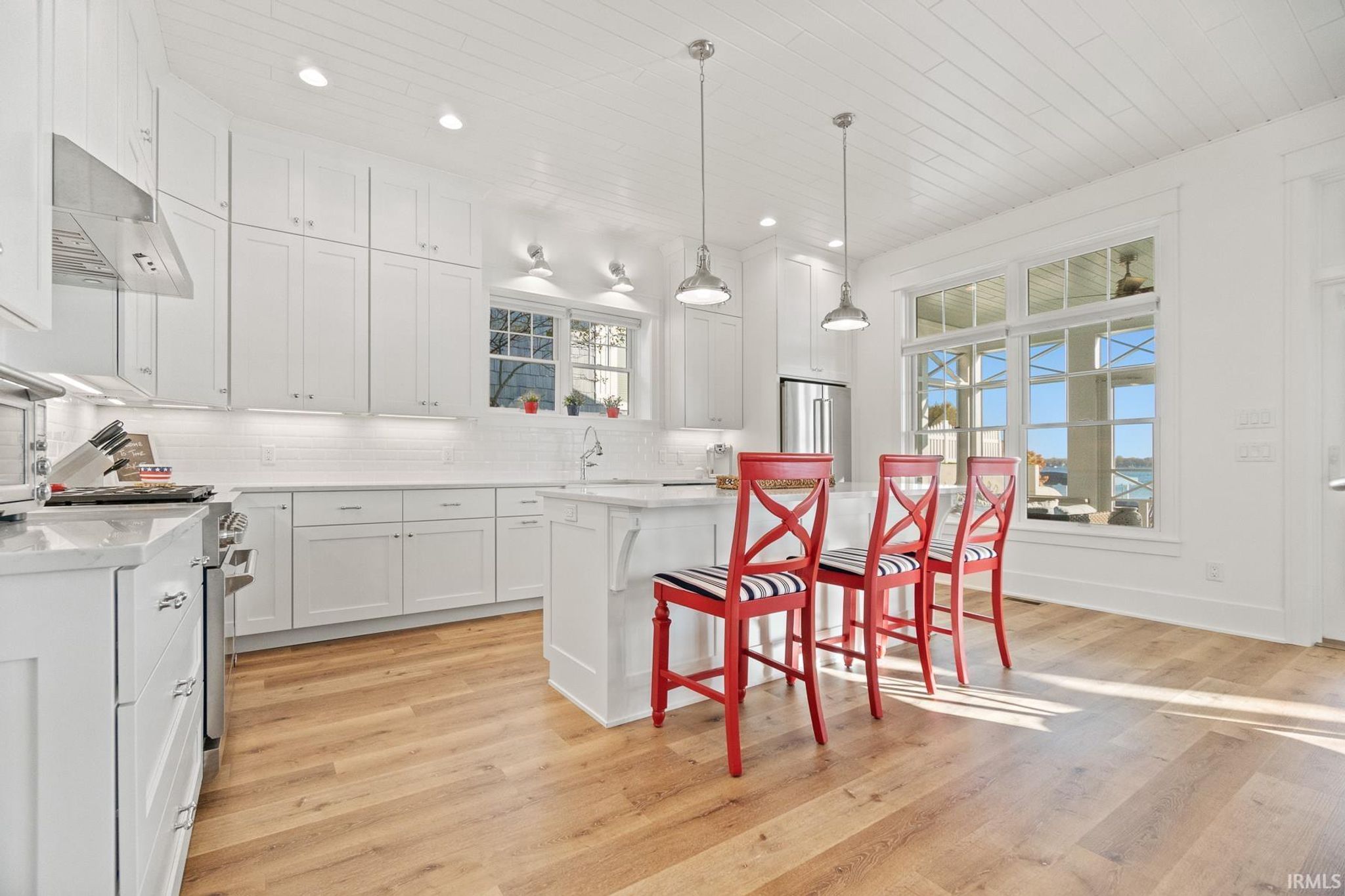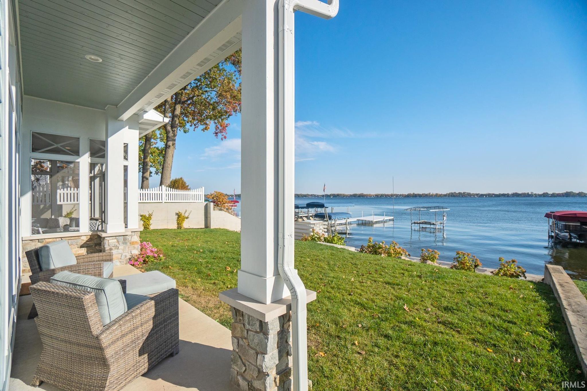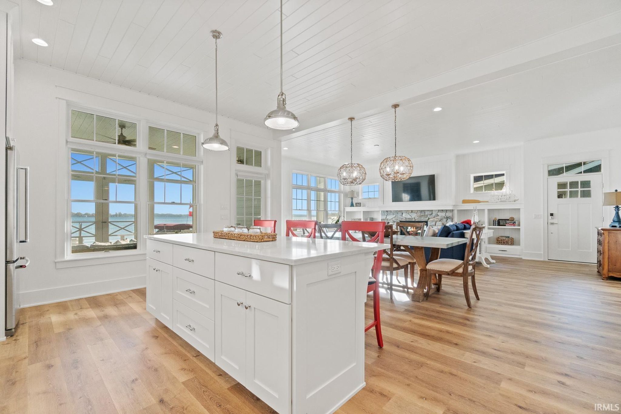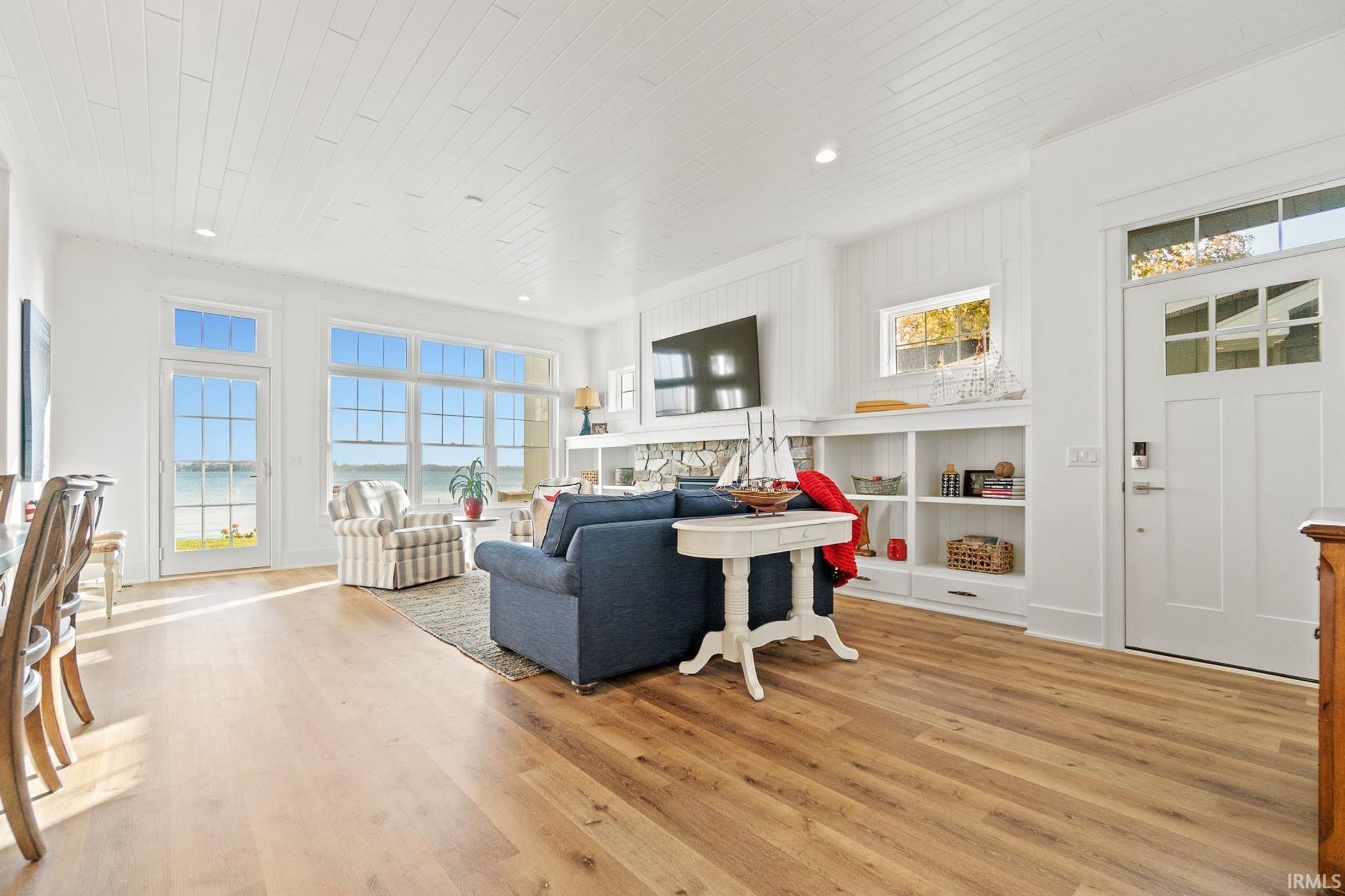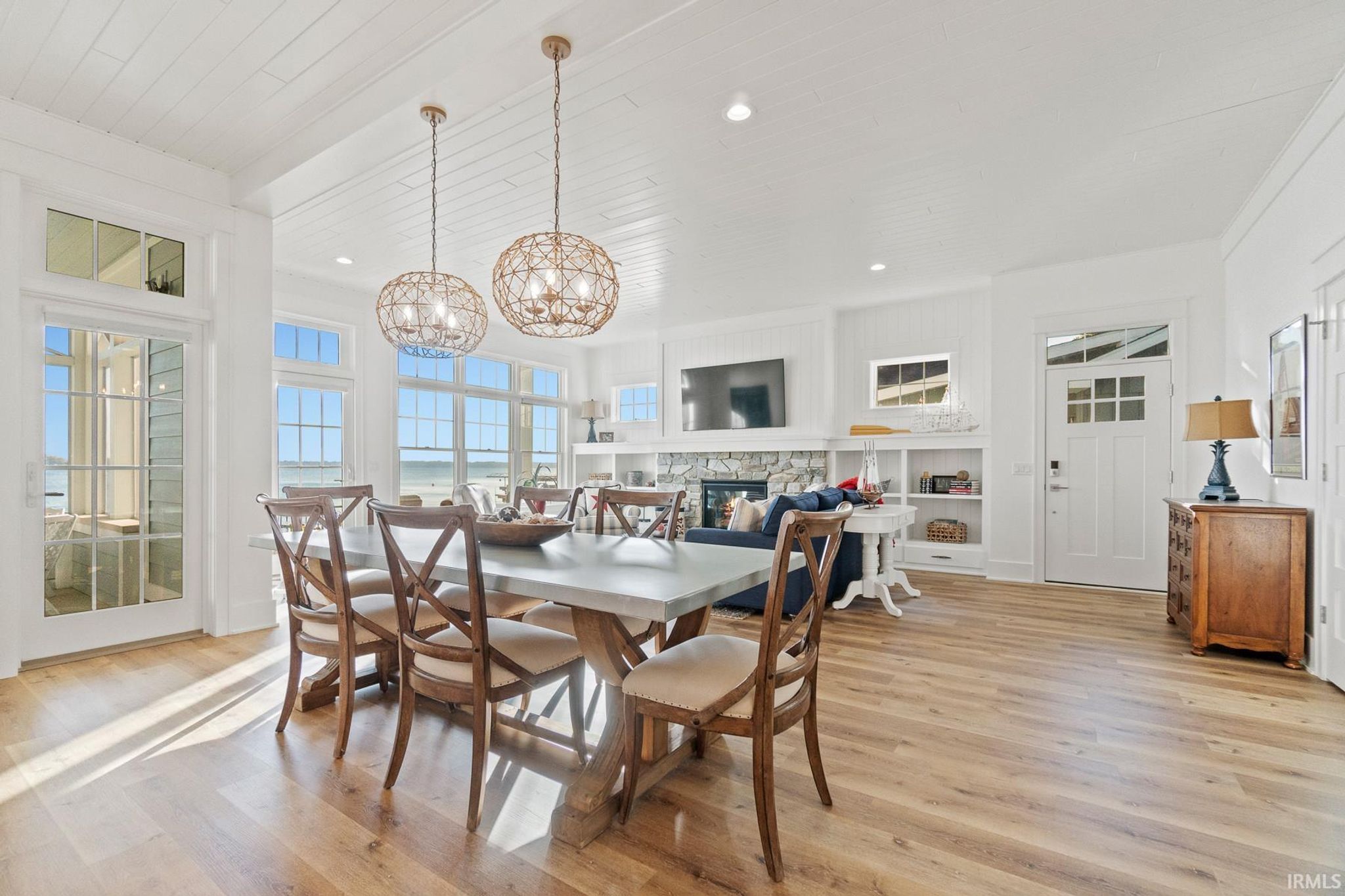 Start Showing Date: 4/10/2026 Start Showing Date: 4/10/26 DESIRABLE location on Lake Wawasee, this custom-built home completed in 2021, sitting at LAKE-LEVEL, showcases exceptional quality, character, abundant storage, & a thoughtful layout design—just minutes from shopping & restaurants. Offering 3,640 sq ft, this spacious lake home features 6 bedrooms & 5.5 baths, including 2 primary suites. The main level hosts the 1st primary suite along with another bedroom w/ensuite. Upstairs is the 2nd primary suite & another bedroom w/ensuite both capture stunning panoramic lake views. The upper level also includes 2 additional bedrooms, a spacious & well-designed guest bath, & a large family room perfect for add’l living & entertaining. The unfinished attic area has already been structurally designed for future completion for a game room. The kitchen is designed for both function & style, featuring floor-to-ceiling shaker cabinetry, quartz countertops, & a large pantry. The great room centers around a beautiful stone fireplace w/shiplap & built-in shelving, creating a warm & inviting gathering space. Outdoor living is a highlight, with 50 ft of weed-free, sandy lakefront & breathtaking panoramic views. Just off the kitchen, a screened porch provides a relaxing retreat, while the covered porch off the great room offers the perfect vantage point for sunrises, sailboats, boat parades, corn hole, & the SPECTACULAR Lake Wawasee 4th of July fireworks. Add’l main-level features include a built-in entry bench off garage, a ½ bath, & a spacious laundry room w/ plenty of storage & 2nd refrigerator. There is a charming cottage feel throughout w/high-end finishes such as tongue-and-groove planked ceilings in the kitchen, dining, & great rooms, textured shiplap walls in the oversized hallway, detailed-shaker doors & frames, along w/LVP floors that lead to the upper level, main-level 10-foot ceilings, quartz & marble countertops throughout, upgraded foam & batting insulation, 2x6 Construction, Andersen 400 Series windows, Hardie board & stone exterior, plus upgraded hail-resistant shingles. The oversized 3-car garage is equipped w/a heating unit & an EV charging port. In the winter months, the garage comfortably stores a 23 ft pontoon, 2 jet ski trailer, & outdoor furniture. During lake season, the garage & driveway can accommodate parking up to 9 vehicles.