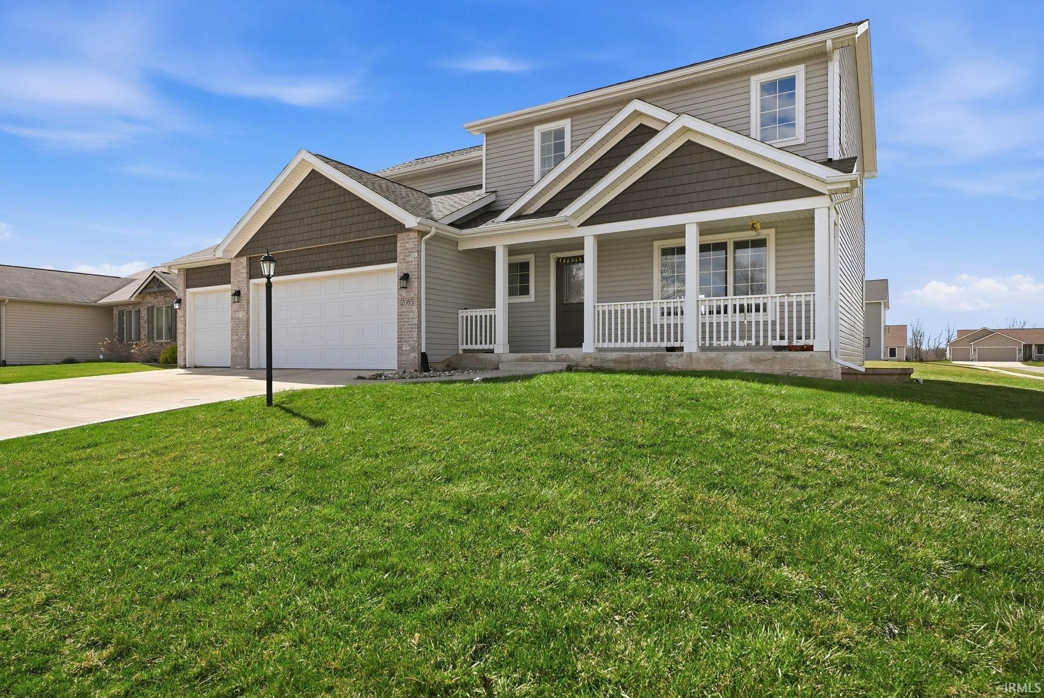 Beautiful and move-in ready. This stylish 2-story home blends modern comfort with everyday functionality. As you enter through the inviting covered front porch, you’ll find a flexible front room, perfect for a home office, cozy den, or dining space to host friends. The open-concept kitchen features custom cabinetry, a corner pantry, stainless steel appliances, and a center island that’s ideal for casual mornings or entertaining nights in. The great room feels bright and airy with soaring ceilings, a cozy corner fireplace, and a wall of windows that fills the space with natural light. Upstairs, you’ll find four generously sized bedrooms, including a relaxing primary suite with a tray ceiling, double vanity, and a tiled walk-in shower. The full basement is already prepped for your plans, whether that is a home gym, movie room, or extra living space, with plumbing in place for a full bath. A vibrant community with a beautiful home with space to grow, work, and unwind, ready for its next chapter.