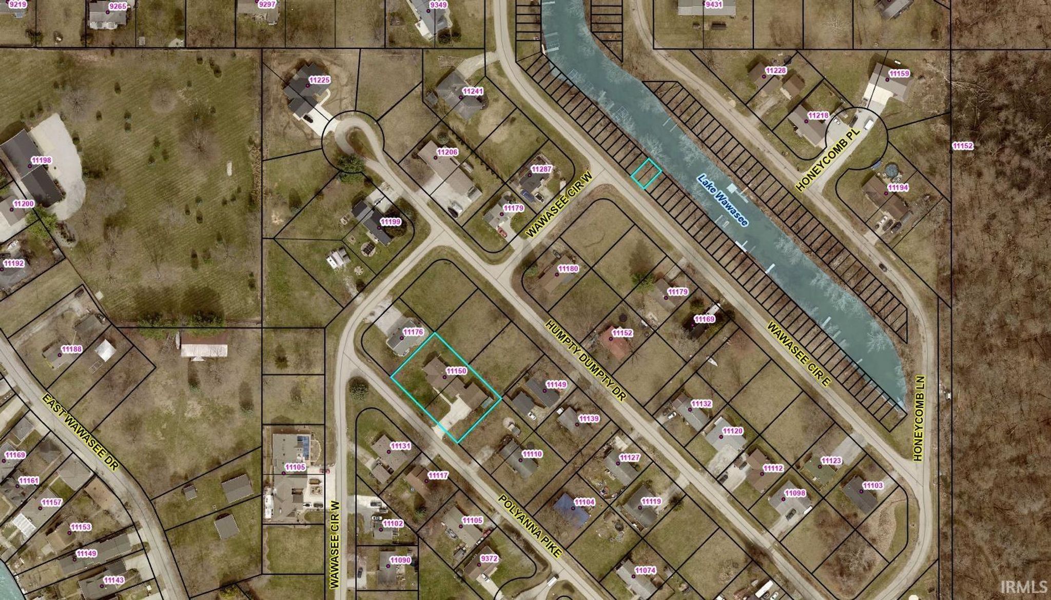 Where Wawasee Dr turns into 1100 E, turn north onto Doll St which runs into Polyanna Pike.