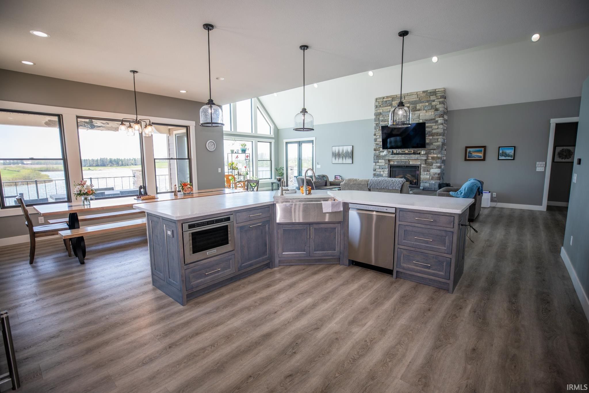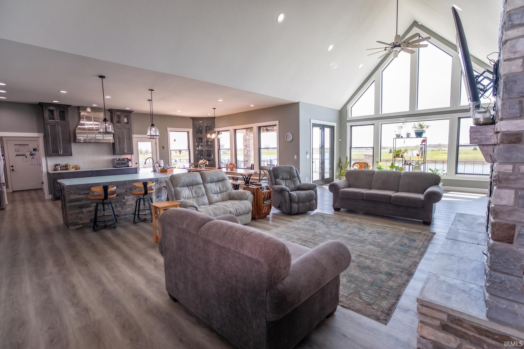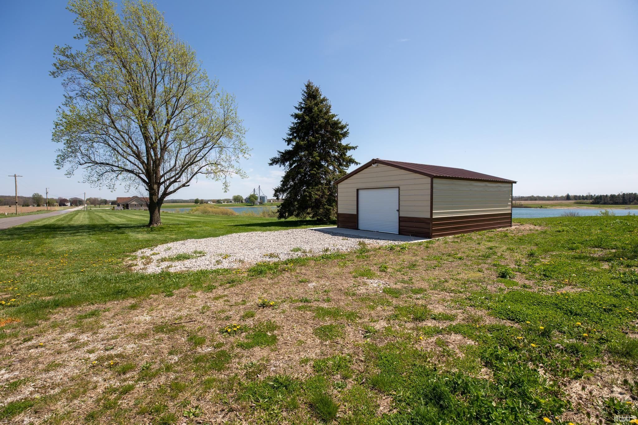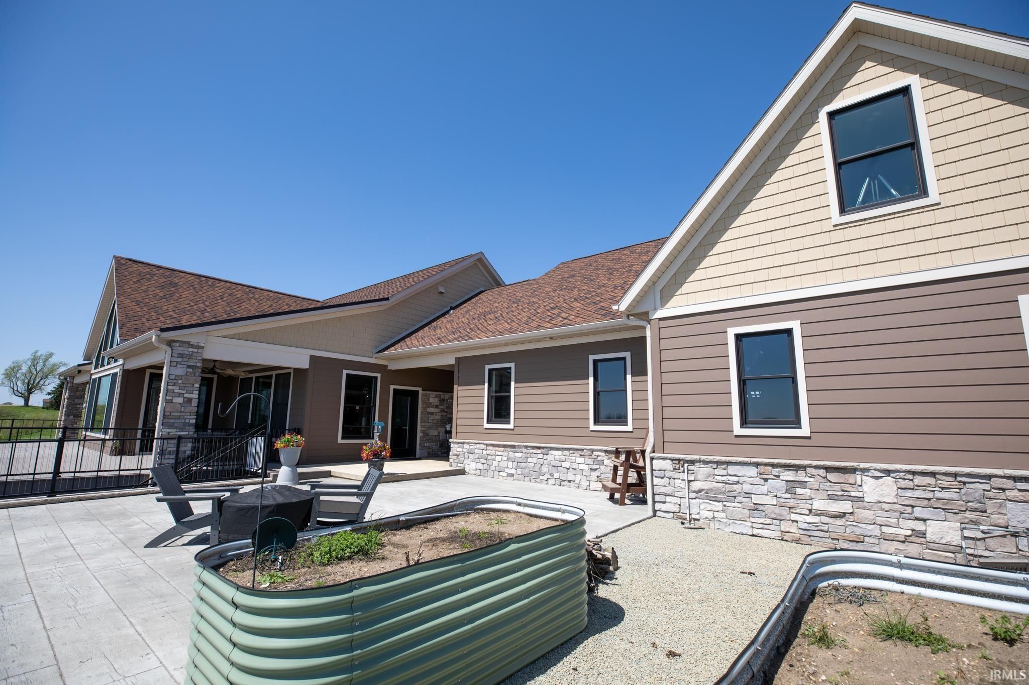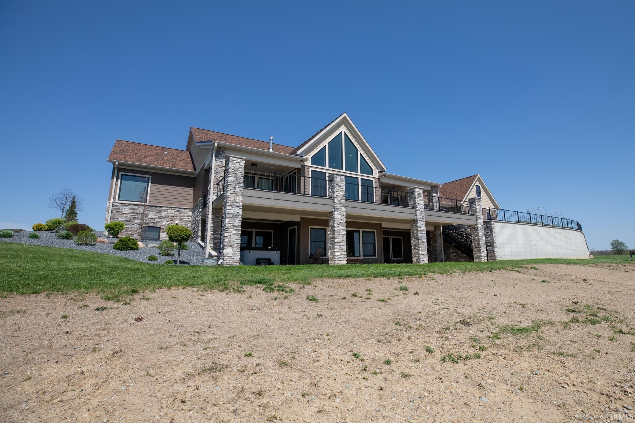 Award-winning luxury meets breathtaking waterfront views in this stunning 4-bedroom, 4.5-bath home, known as “The Golden Pond” by Renewal Homes. Recognized as the 2023 Builder’s Association of North Central Indiana Homes on Parade People’s Choice Award winner, this custom-built property showcases exceptional craftsmanship and thoughtful design throughout. Set along a private, stocked lake and 43 acres, this property offers a rare opportunity for peaceful waterfront living. Enjoy the private pier, gazebo, and charming shed, all designed for relaxation and entertaining. Expansive outdoor spaces include a massive deck overlooking the water and beautifully maintained garden areas. Inside, the open-concept layout features a chef’s kitchen with stone surfaces, bar seating, walk-in pantry, and seamless flow into the dining and living room with a cozy fireplace. The luxurious primary suite includes a spa-like bath with a soaking tub, stone shower, and an impressive walk-in closet. Three-car attached garage has epoxy floors and leads the way to a finished loft with a bedroom, bathroom, and built-in office area. The walk-out basement offers a large rec room with polished concrete floors, space for a future kitchenette, craft room, second laundry area, and access to a private hot tub retreat. Driveway and sidewalks are prepped for heating installation. Home is wired for a whole house generator.