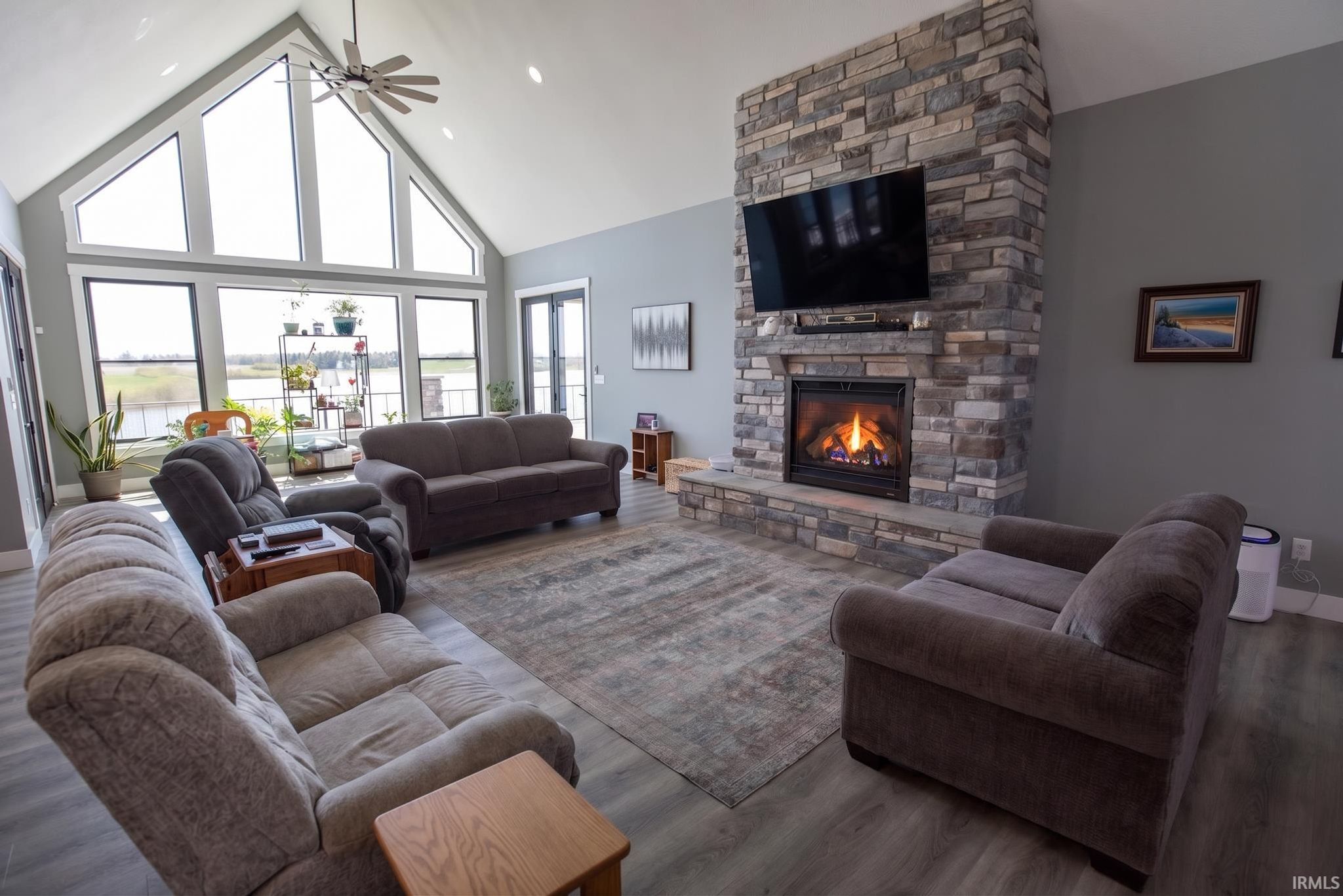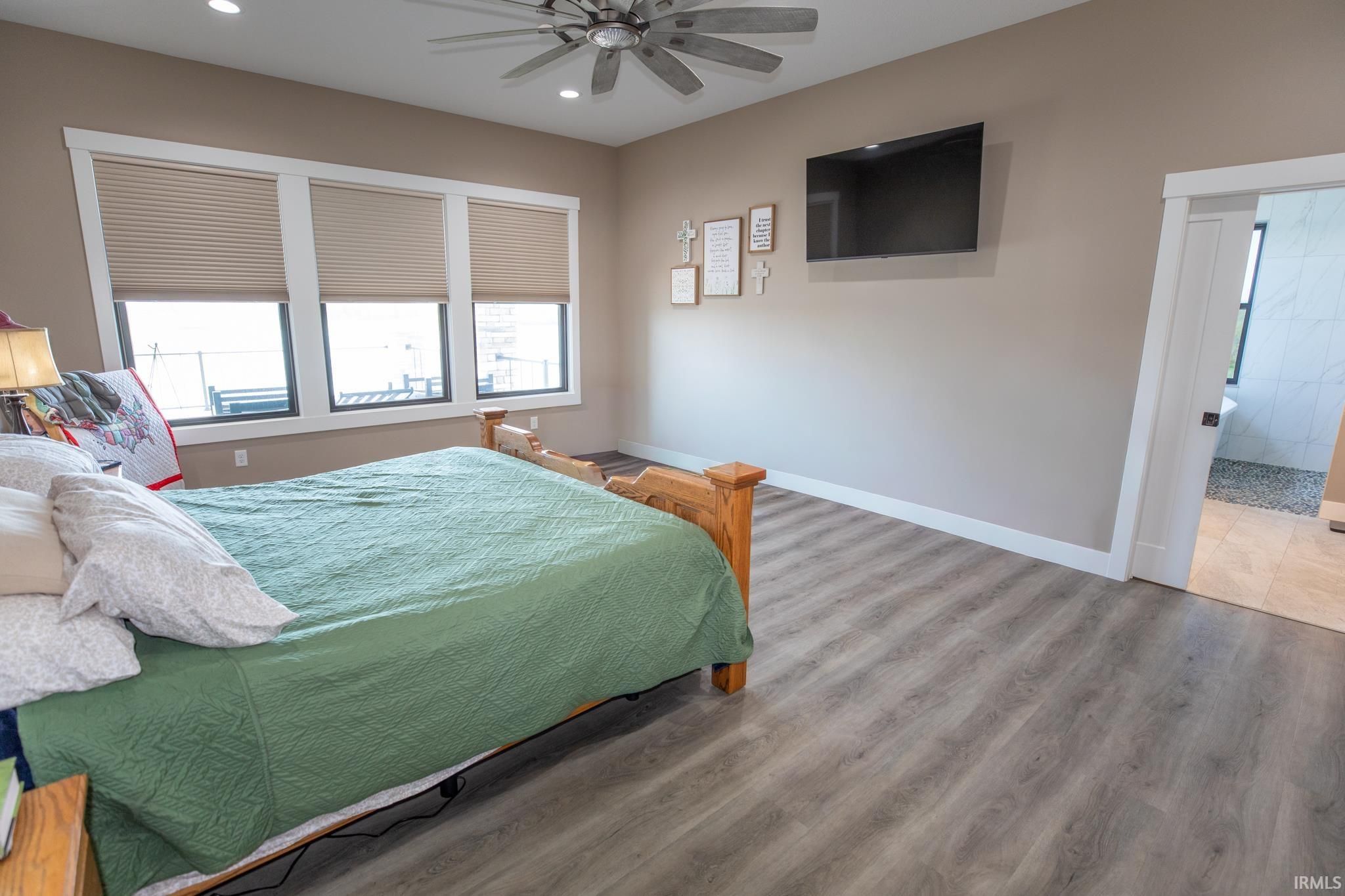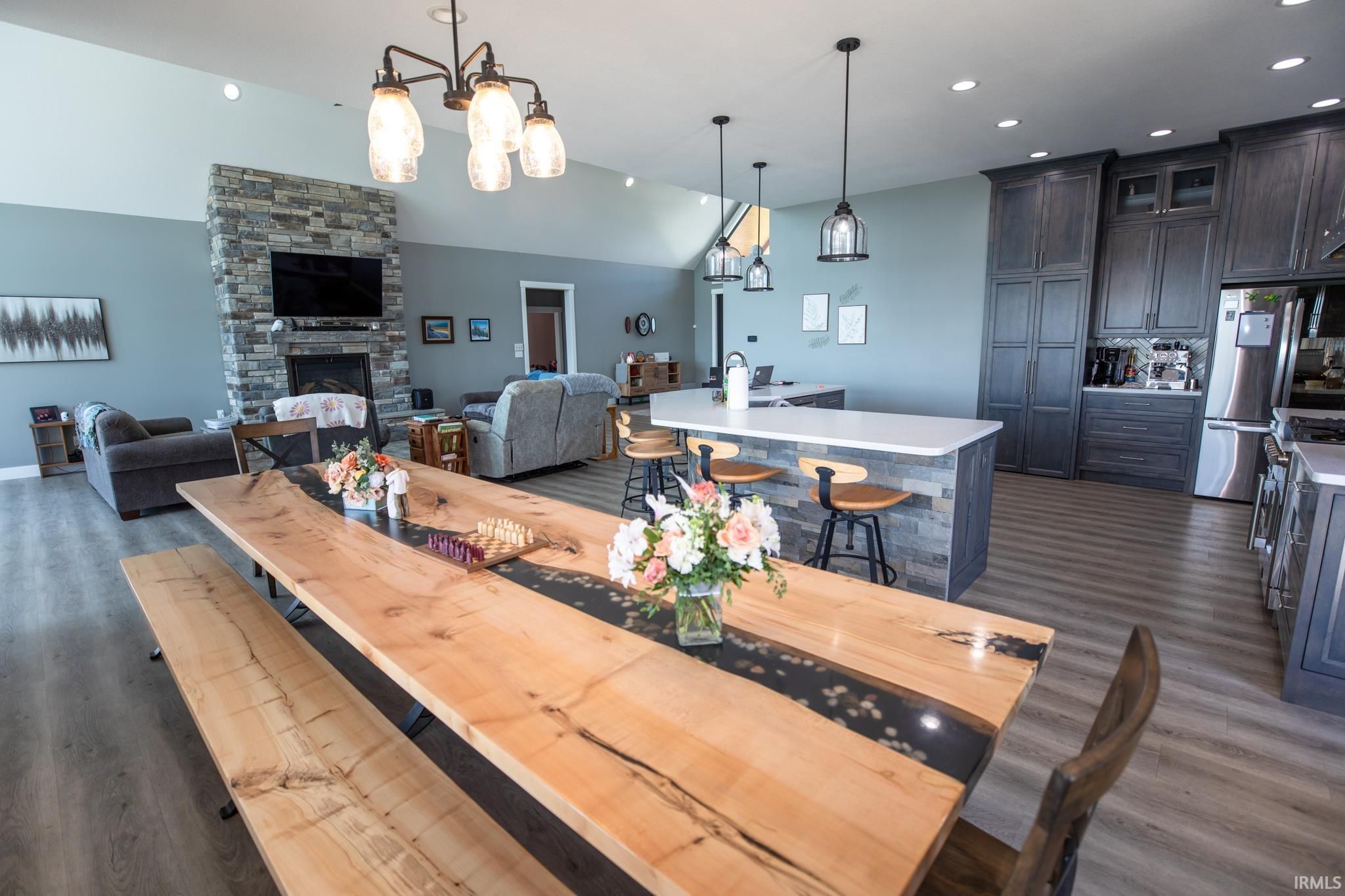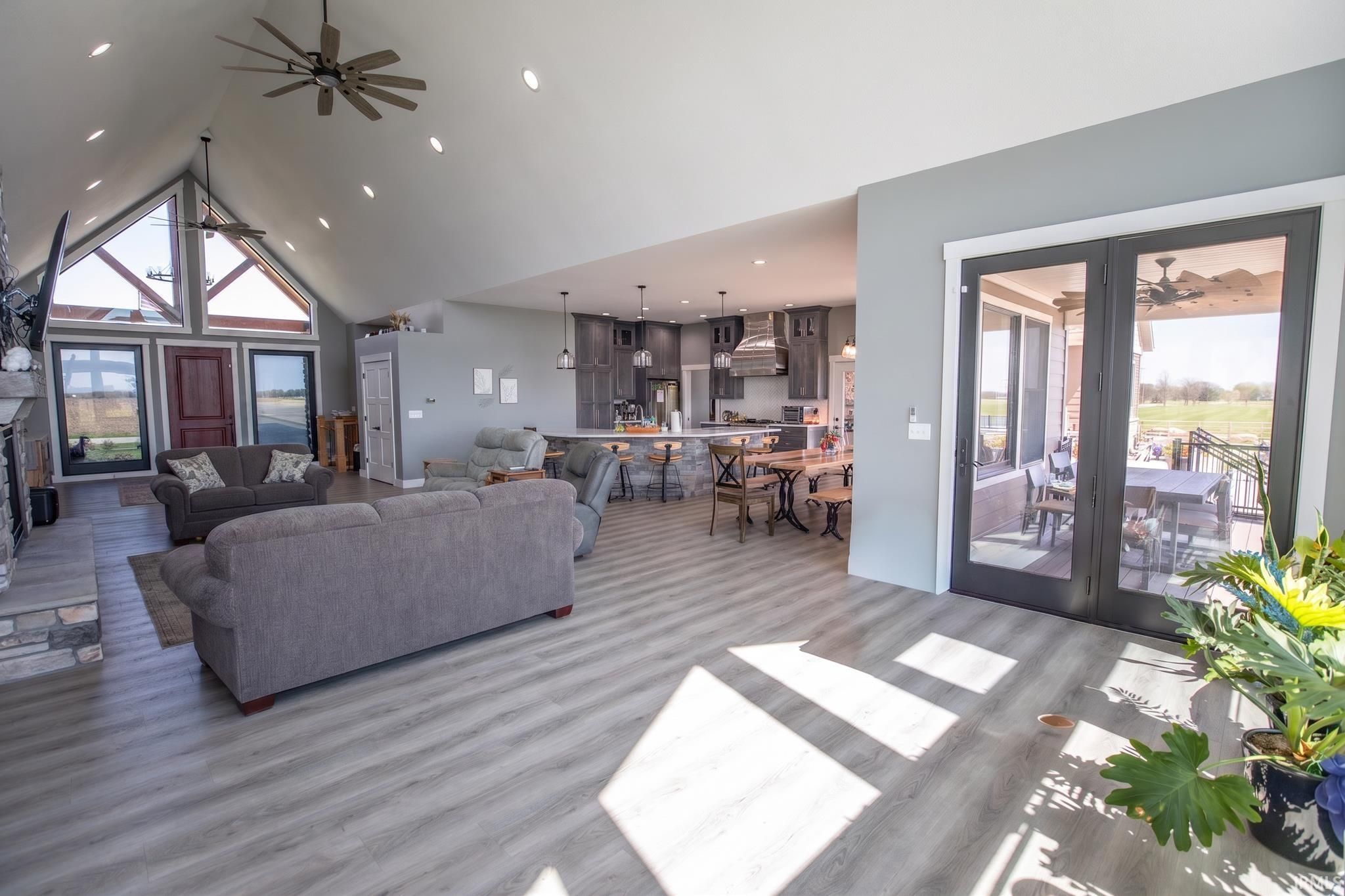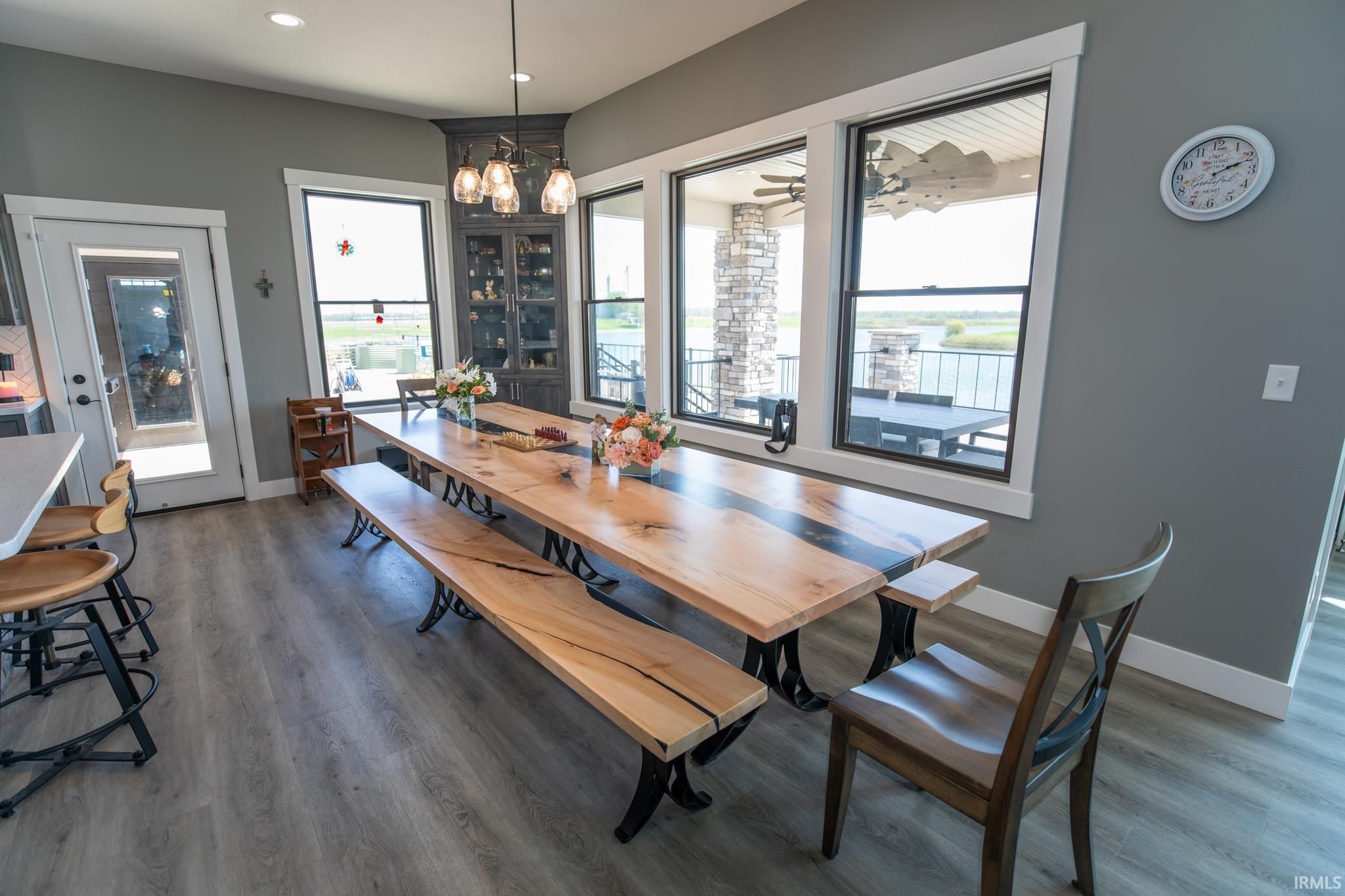 Award-winning luxury meets breathtaking waterfront views in this stunning 4-bedroom, 4.5-bath home, known as “The Golden Pond” by Renewal Homes. Recognized as the 2023 Builder’s Association of North Central Indiana Homes on Parade People’s Choice Award winner, this custom-built property showcases exceptional craftsmanship and thoughtful design throughout. Set along a private, stocked lake and 43 acres, this property offers a rare opportunity for peaceful waterfront living. Enjoy the private pier, gazebo, and charming shed, all designed for relaxation and entertaining. Expansive outdoor spaces include a massive deck overlooking the water and beautifully maintained garden areas. Inside, the open-concept layout features a chef’s kitchen with stone surfaces, bar seating, walk-in pantry, and seamless flow into the dining and living room with a cozy fireplace. The luxurious primary suite includes a spa-like bath with a soaking tub, stone shower, and an impressive walk-in closet. Three-car attached garage has epoxy floors and leads the way to a finished loft with a bedroom, bathroom, and built-in office area. The walk-out basement offers a large rec room with polished concrete floors, space for a future kitchenette, craft room, second laundry area, and access to a private hot tub retreat. Driveway and sidewalks are prepped for heating installation. Home is wired for a whole house generator.